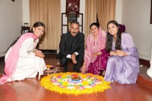 मुख्यमंत्री ठाकुर सुखविंद्र सिंह सुक्खू ने दिवाली के शुभ अवसर पर अपने आधिकारिक आवास ओक ओवर में अपने परिवार के साथ विधिवत पूर्जा-अर्चना की और प्रदेशवासियों की सुख शांति की कामना की।