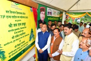 मुख्यमंत्री ने कहा कि हिमाचल प्रदेश ने टीकाकरण अभियान में उत्कृष्ट कार्य किया है और टीकाकरण के पहली तथा दूसरी डोज का शत-प्रतिशत लक्ष्य हासिल करने वाला देश का पहला राज्य बन गया है। राज्य की इस उपलब्धि के लिए प्रधानमंत्री नरेन्द्र मोदी ने प्रदेशवासियों को बधाई देते हुए कहा कि राज्य विकास के मामले में एक चैम्पियन के रूप में उभरा है। उन्होंने लोगों से बूस्टर डोज टीका लगवाने का भी आग्रह किया। जय राम ठाकुर ने कहा कि पिछली राज्य सरकार ने गरीबों और पिछड़े वर्ग के कल्याण के लिए एक भी योजना शुरू नहीं की थी। उन्होंने कहा कि वर्तमान राज्य सरकार ने समाज के कमजोर वर्ग के कल्याण और उत्थान के लिए सहारा योजना, शगुन योजना, हिमकेयर, मुख्यमंत्री गृहिणी सुविधा योजना, मुख्यमंत्री स्वावलंबन योजना जैसी अनेक योजनाएं शुरू की हैं। उन्होंने कहा कि चुनाव के दृष्टिगत विपक्ष प्रदेश के लोगों को गुमराह कर रहा है। उन्होंने कहा कि प्रधानमंत्री नरेन्द्र मोदी ने आगामी वर्ष में देश के युवाओं को 10 लाख रोजगार देने का आश्वासन दिया है। उन्होंने कहा कि राज्य में विपक्ष एक नेतृत्वविहीन, मुद्दाविहीन और दिशाहीन है। उन्होंने कहा कि प्रदेश का निर्बाध विकास सुनिश्चित करने के लिए राज्य में डबल इंजन की सरकार महत्वपूर्ण है। इससे पहले, मुख्यमंत्री ने चुवाड़ी में आयोजित 73वें राज्य स्तरीय वन महोत्सव की अध्यक्षता की। इस अवसर पर उन्होंने चुवाड़ी हेलीपैड के समीप पुनिका ग्रैनटम (दाड़ू) का पौधा भी रोपा। मुख्यमंत्री ने कहा कि स्वतंत्रता के 75 वर्ष और हिमाचल प्रदेश के गठन के 75 वर्ष के पावन अवसर पर इस वर्ष वन महोत्सव हरियाली महोत्सव के रूप में मनाया जा रहा है। उन्होंने कहा कि इस उत्सव का मुख्य उद्देश्य लोगों को हमारे जीवन में वनस्पतियों और जीवों के महत्व के बारे में जागरूक करना है। उन्होंने कहा कि इस वर्ष राज्य के वन विभाग ने 15,000 हेक्टेयर से अधिक भूमि में पौधरोपण का लक्ष्य निर्धारित रखा है। उन्होंने कहा कि राज्य सरकार के सुनियोजित प्रयासों के फलस्वरूप पिछले चार वर्षों में राज्य के हरित आवरण में लगभग 342 वर्ग किलोमीटर की वृद्धि हुई है।